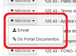 Outra novidade, está no botão adicionar, que agora abre as duas opções disponíveis: “Enviar” ou “Do Portal Documentos”