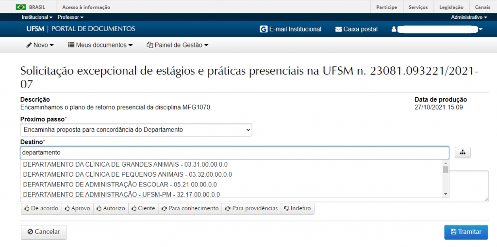 • OBS.: Utilizar quando for necessário a assinatura/concordância do Departamento Didático no processo.