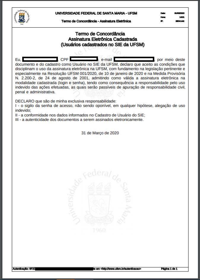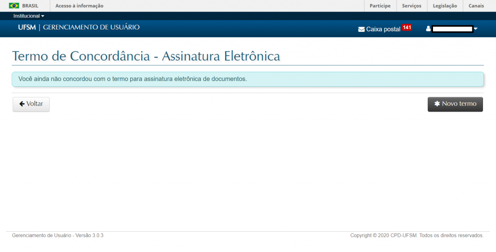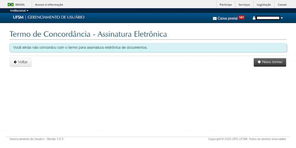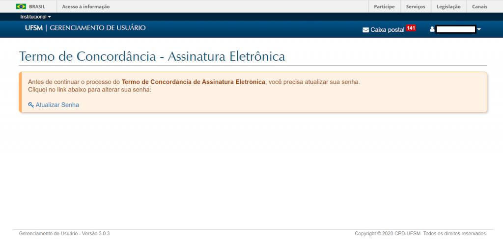 6. Uma vez atualizada a senha, poderá então ser solicitado o Termo para uso da Assinatura Eletrônica.