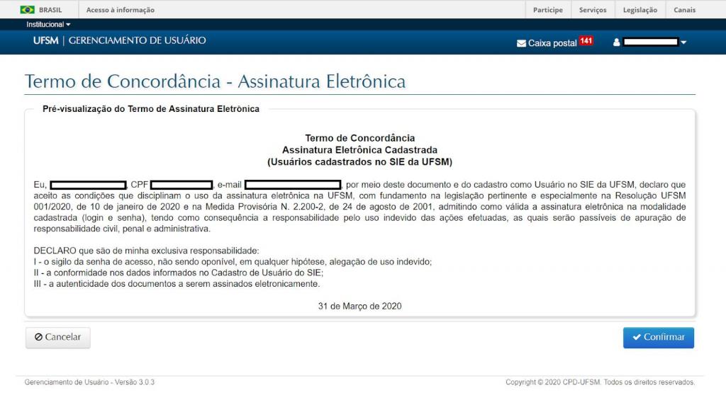 8. No momento que o botão ´Confirmar´ for acionado, o termo já estará assinado e válido.