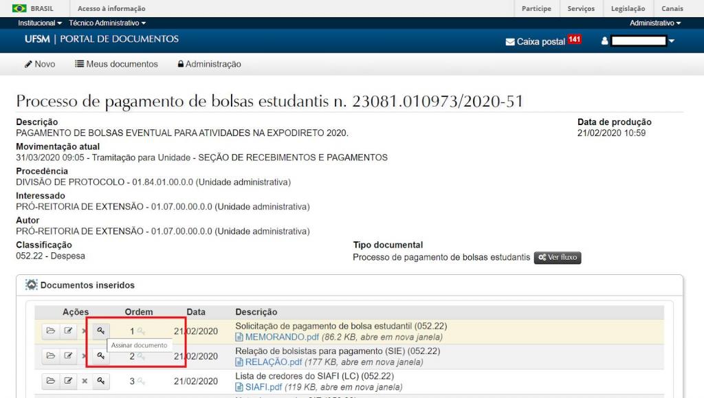 9. A partir desse momento, a funcionalidade de Assinar documentos eletronicamente já estará habilitada no Portal Documentos e Caixa Postal. Saiba mais em Como assinar documentos no Sistema PEN-SIE da UFSM – YouTube.
