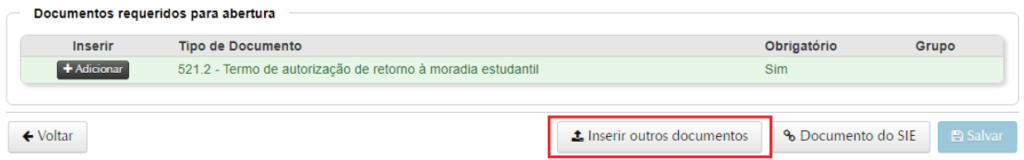 5.1. Caso você necessite incluir algum documento que não seja listado, poderá utilizar o botão ‘Inserir outros documentos’ e buscar outros tipos.