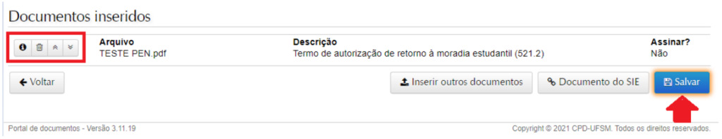 7. Ao finalizar a inclusão do(s) documentos(s), clicar em Salvar.
