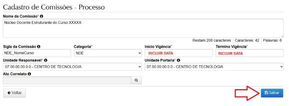 3.6 – No campo Unidade responsável, que é obrigatório, você deve selecionar a unidade à qual aquela comissão está vinculada.