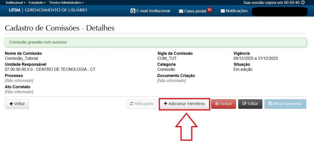 4.8 – Após salvar a comissão, você pode sempre editar, incluir ou excluir membros nos ícones de abrir e editar.
