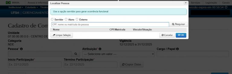 4.1 – Para cada membro, há as opções de cadastramento (Pessoa, Atribuição, Cargo/papel Início e Término Participação).