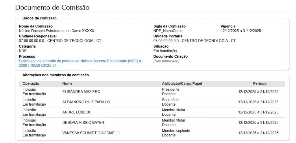 3.1 Nome da Comissão: Dar preferência por seguir o padrão “Núcleo Docente Estruturante – Nome do Curso”