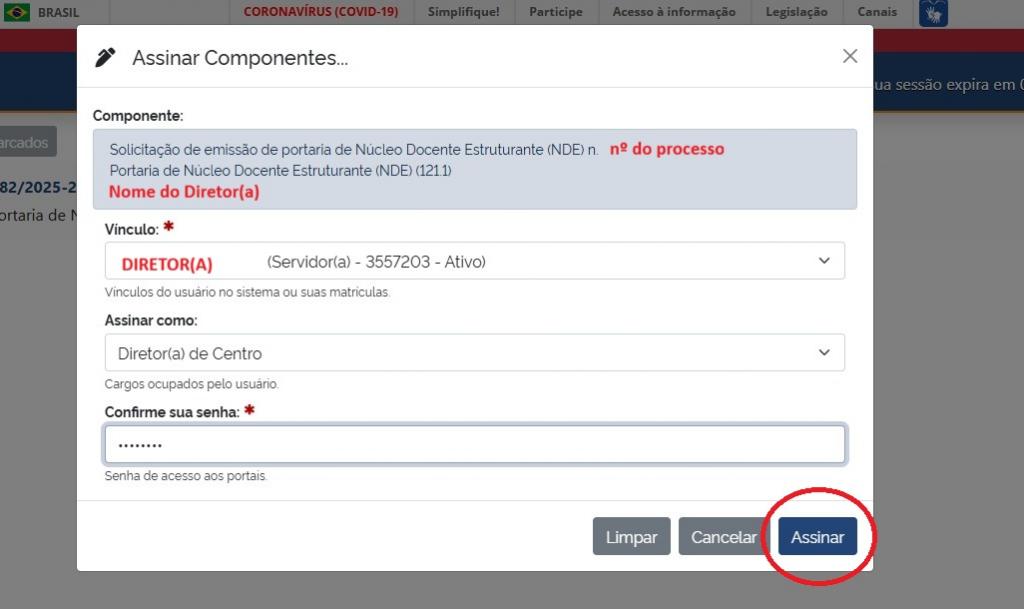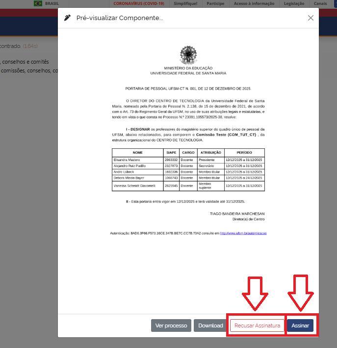 8.3.- Após conferência dos dados o(a) diretor(a) do centro, para assinar a portaria, deverá clicar em “Assinar”