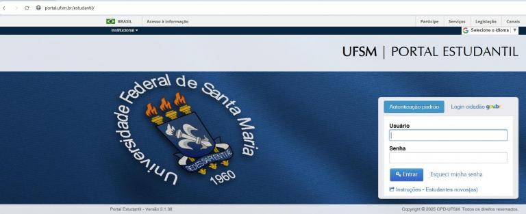 1 – Acessar o Portal Estudantil e efetuar login, com o número da matrícula e a senha.