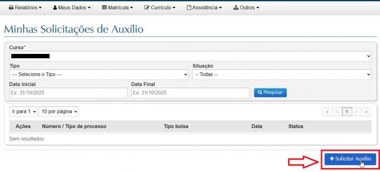 3 – Clique em “+Solicitar Auxílio”.