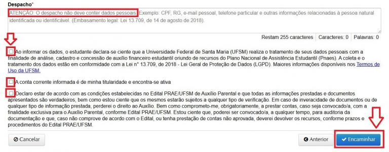 8 – Insira um texto no campo “Despacho”;