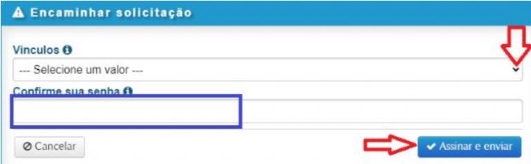 11 – Clicar na lista suspensa, selecionar seu nome, inserir a senha e clicar em “Assinar e enviar”.