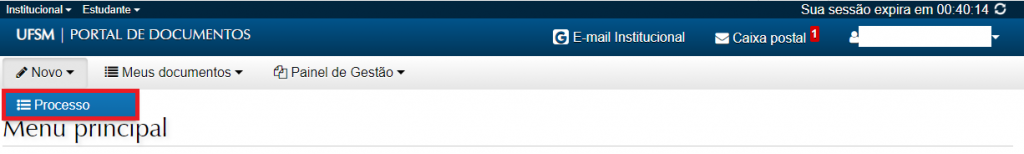 2 – Na barra superior, selecionar o botão ‘NOVO’, ‘Processo’: