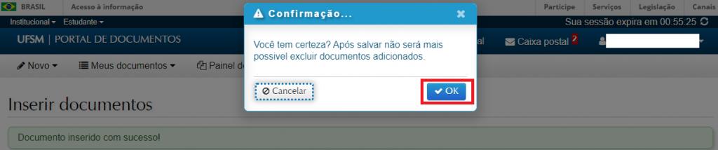 8 – Após clicar em “Salvar”, aparecerá uma mensagem de confirmação, se os documentos inseridos estiverem corretos, clicar em “OK”.
