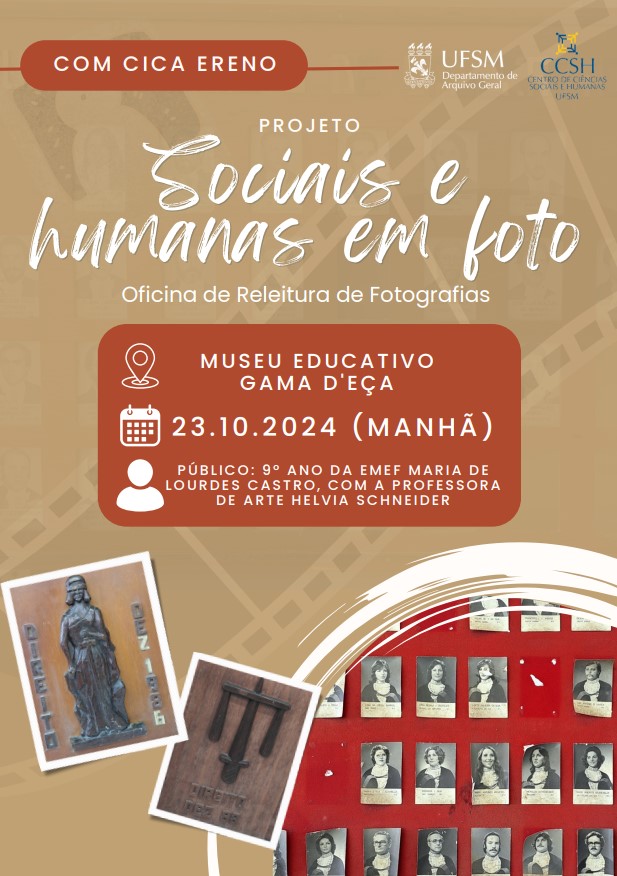 O projeto de extensão “Sociais e Humanas em Foto: Preservação, Acesso e Educação Patrimonial” registro n. 062846 iniciou suas atividades em setembro de 2024 sob coordenação do Departamento de Arquivo Geral em parceria com o Centro de Ciências Sociais e Humanas (CCSH) da Universidade Federal de Santa Maria e se propõe, por meio de resgate no arquivo fotográfico da UFSM e no Arquivo Setorial do Centro de Ciências Sociais e Humanas, localizar registros imagéticos de eventos e acontecimentos no perímetro hoje denominado Distrito Criativo Centro Gare que comprovem ações sociais e humanas realizadas por projetos deste centro com limite temporal de 1970 a 2000.