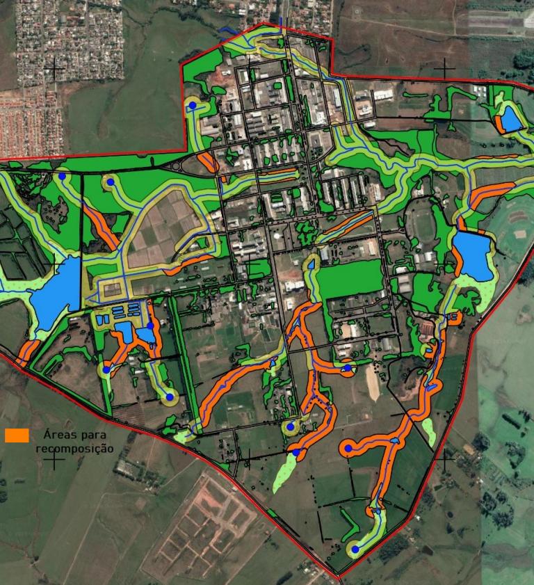 Com intuito de adequação à legislação ambiental vigente e ao Cadastro Ambiental Rural (CAR), Capítulo VI da Lei Nº 12.651/2012, será realizada a recomposição de Áreas de Preservação Permanente da UFSM, através do plantio de 41 mil indivíduos de espécies nativas da região, totalizando aproximadamente 37 hectares. Isso será feito por meio de atividade de um projeto da empresa SUSTENTASUL Consultoria e Gestão Ambiental – EIRELLI, de forma a auxiliar a Instituição a alcançar as metas do CAR e colaborar na implantação de bosques com fomento à pesquisa, desenvolvimento e atividades de extensão para professores e alunos da UFSM. Essa recomposição da faixa de APP, será alinhada ao Plano de Recuperação de Área Degradada (PRAD) que será exigido pelo órgão licenciador à UFSM. Além da recomposição ocorrer nas Áreas de Preservação da zona urbana da UFSM (figura 2), também vão ocorrer na zona rural da Instituição (figura 3).