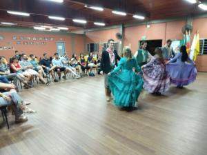 Aconteceu na noite da última terça-feira (03/12) o jantar de confraternização com os estudantes estrangeiros que estiveram na UFSM durante o segundo semestre de 2019. O jantar foi promovido pela SAI em parceria com o DTG Noel Guarany e contou com apresentações sobre história, geografia e cultura do Rio Grande do Sul, incluindo danças típicas do estado, além de uma oficina sobre o preparo do chimarrão e outra de dança, na qual os intercambistas foram convidados a dançar no ritmo da vaneira. Na sequência, foi oferecido um jantar com um dos pratos típicos da cultura gaúcha: o carreteiro.