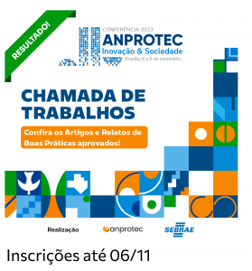 A Conferência Anprotec 2023 acontecerá em Brasília de 6 a 9 de novembro, com foco na temática “Inovação e Sociedade: tecnologias emergentes e a transformação do empreendedorismo”. No segundo dia, 7/11, haverá um “Bate-papo sobre investimento empreendedor” para discutir investimentos no empreendedorismo. O evento contará com mais de 40 palestrantes e cerca de 25 atividades programadas, incluindo painéis, debates, fórum Sebrae de inovação, talks, eventos sociais, apresentação de trabalhos, visitas técnicas, seminário de resultados da Plataforma InovaLink e outras atividades. Inscreva-se aqui!
