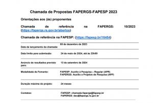 O presente Edital Fapergs 09/2023 Programa Pesquisador Gaucho – PqG tem por objetivo selecionar propostas para apoio financeiro a projetos que visem a contribuir significativamente para o desenvolvimento científico, tecnológico e de inovação no estado do Rio Grande do Sul, em qualquer área do conhecimento. Inscrições até 27/05/2024. Link. |