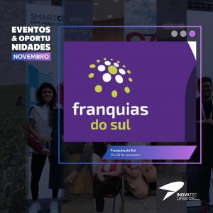 Franquias do Sul Empreendedores e franqueados de diversas cidades gaúchas se reunirão em Santa Maria no próximo dia 28 de novembro para o evento “Franquias do Sul”. Organizado pelo Grupo Diário e Químea Inteligência Ambiental, o evento será uma oportunidade para franqueadores de pequeno e grande porte apresentarem seus modelos de negócios a investidores e empreendedores da região, com o objetivo de fomentar novos investimentos. Inscreva-se. |