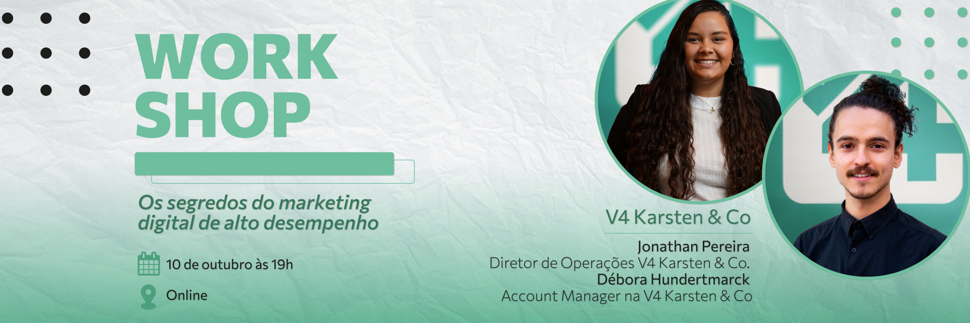 Vem aí mais um Workshop promovido pelo InovaTec UFSM e Pulsar Incubadora Tecnológica, totalmente gratuito e online. O tema da vez é marketing digital de alto desempenho, nele, os sócios da V4 Karsten & Co irão ensinar estratégias e técnicas para o sucesso das vendas online.