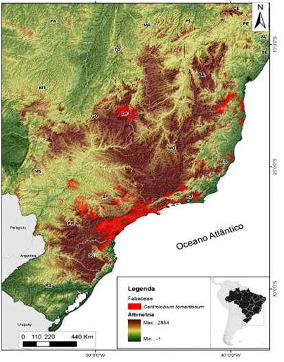 Mapa 01- Distribuição geográfica de Centrolobium tomentosum
