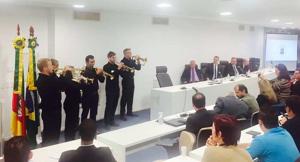 No dia 18 de maio às 16 horas o estúdio de trompete da Orquestra Sinfônica apresentou-se na sessão externa da Câmara de Vereadores de Santa Maria, realizada no campus da Universidade Federal. O momento que integra a comunidade ao universo acadêmico demonstra a importância do relacionamento entre as esferas sociais. O estúdio é coordenado pelo professor Clayton Miranda e integrado pelos alunos do Curso de Música da UFSM.