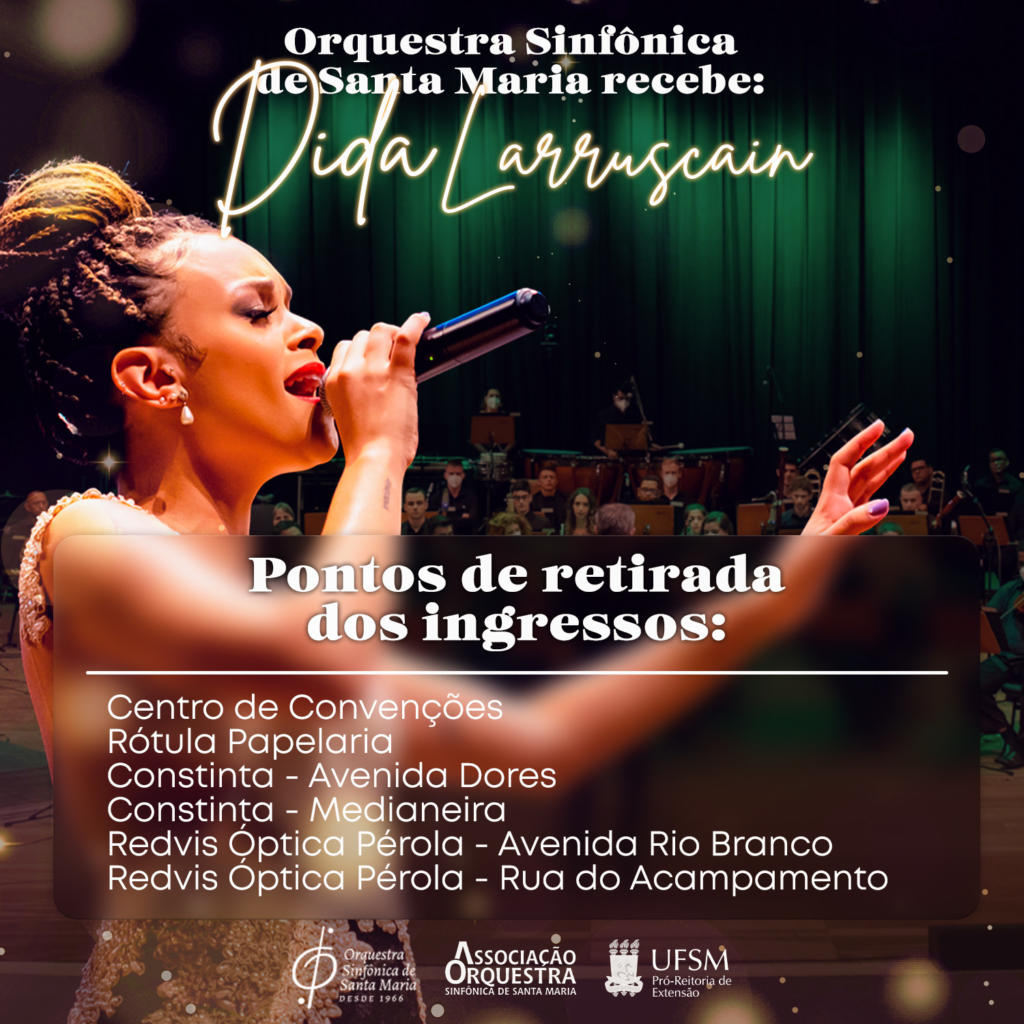 Os ingressos para o concerto do dia 28/04/2022 já estão disponíveis para retirada (mediante a doação de 1kg de alimento não perecível) nos seguintes postos espalhados por Santa Maria: