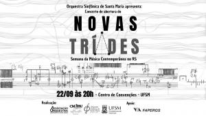 A Orquestra Sinfônica de Santa Maria fará o Concerto de abertura do evento, no dia 22 de setembro, às 20h, no Centro de Convenções da Universidade Federal de Santa Maria. O concerto de abertura do Novas Tríades conta com um programa inteiramente dedicado a atores importantes da música contemporânea feita no Rio Grande do Sul, sejam eles compositores ou instrumentistas.