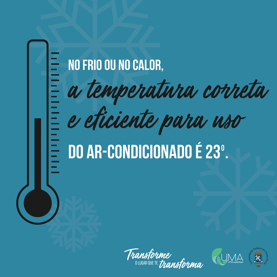 A campanha foi elaborada pela Facos Agência e desdobrada por bolsistas de Comunicação Social e Desenho Industrial do UMA e do Laboratório de Relações Públicas (LARP). Os materiais elaborados trazem dados e orientações sobre o consumo de energia, água e copos plásticos, o uso correto do ar condicionado, entre outros temas. As peças serão veiculadas no site institucional da UFSM e do UMA, mídias sociais e murais das unidades universitárias. Os dados da campanha foram obtidos por meio de estudos realizados pelo UMA e pelo Grupo de Eficiência Energética e também de pesquisa desenvolvida pela Universidade Federal de Lavras (UFLA), de Minas Gerais, instituição referência em sustentabilidade e preservação do meio ambiente na América Latina.