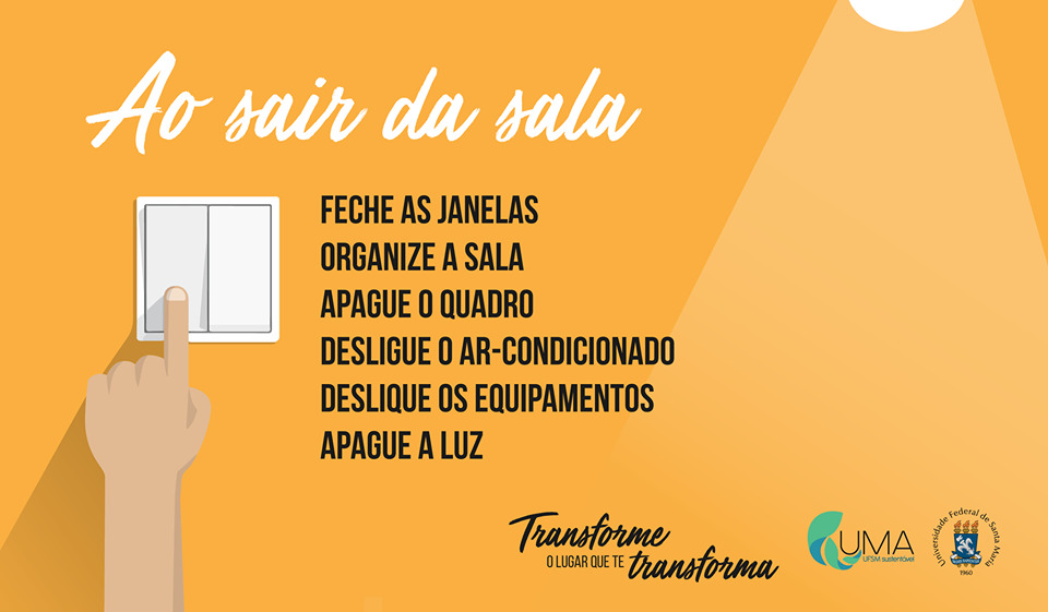 A UFSM lança, neste mês de junho, a campanha institucional “Transforme o lugar que te transforma”. Iniciativa do projeto Universidade Meio Ambiente (UMA), a campanha é composta por materiais gráficos que orientam a comunidade universitária sobre o uso racional dos recursos, chamando a atenção para a responsabilidade de cada um na sustentabilidade da instituição.
