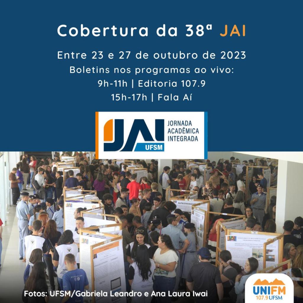 As muitas atividades que acontecem na UFSM durante a semana da 38ª JAI – Jornada Acadêmica Integrada serão acompanhadas pela UniFM com entradas ao vivo de segunda a sexta-feira. Pela manhã, entre 9h e 11h, a cobertura será no programa Editoria 107.9 e à tarde, das 15h às 17h, é a vez do programa Fala Aí.