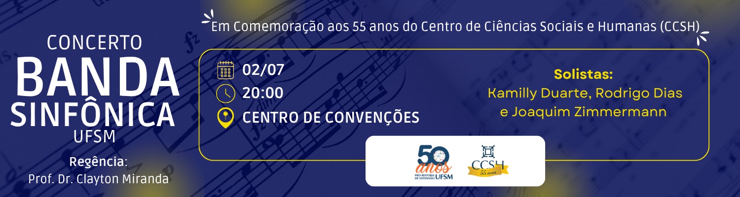 Em comemoração aos 55 anos do Centro de Ciências Sociais e Humanas da UFSM, a Banda Sinfônica da UFSM convida a comunidade para um momento especial de arte e celebração!