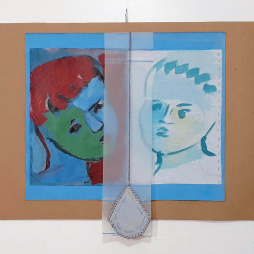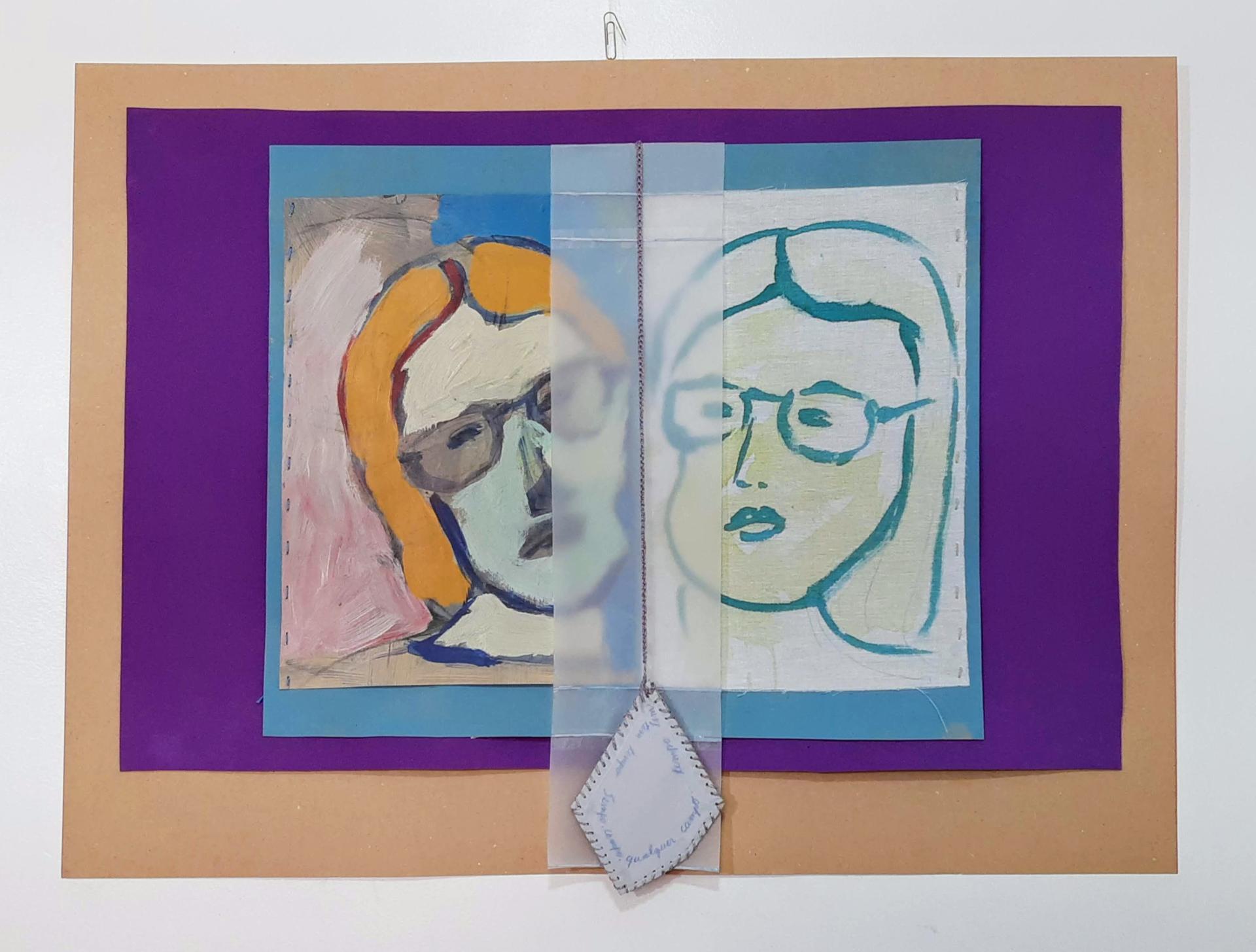 Linguagem e técnica: Objeto arte e poema. Pintura em papel, desenho em tecido, pêndulo e papel vegetal.