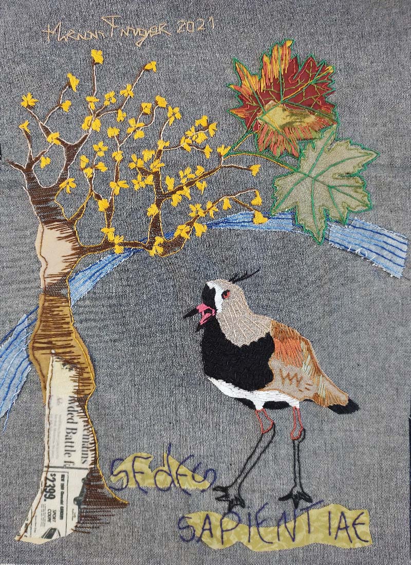 Linguagem e técnica: Pintura e bordado sobre tecido