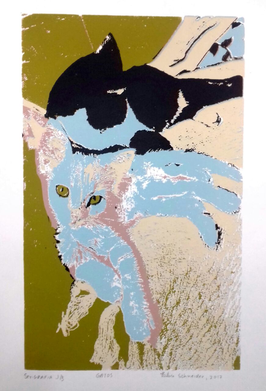 Obra 2: Gatos Bóris e Nina. Dimensões: 297mm × 420mm. Técnica: Serigrafia