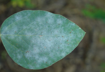 O oídio (Microsphaera diffusa) que também ocorre em mais de um momento do ciclo, é favorecido por temperaturas amenas e baixa umidade. Ele pode ocorrer em folhas, vagens e hastes, apresentando inicialmente coloração branca e, com o passar do tempo, coloração castanha-acinzentada. Esta doença, assim como as demais, pode ocasionar a desfolha.