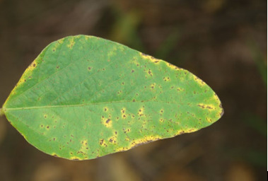 A mancha-parda (Septoria glycines) também é uma doença recorrente no final do ciclo da cultura que causa a desfolha. Este patógeno necessita de um período mínimo de molhamento foliar de 6 horas e temperatura entre 15℃ a 30℃ para o desenvolvimento dos sintomas. Essa doença causa pontuações pardas nas folhas que evoluem para manchas castanhas com centro angular com halo amarelo (Figura 2). Especialmente nesse caso, cabe destacar que o fungo sobrevive após a colheita da cultura. Característica de importante compreensão para adoção de estratégias eficientes de controle da doença.