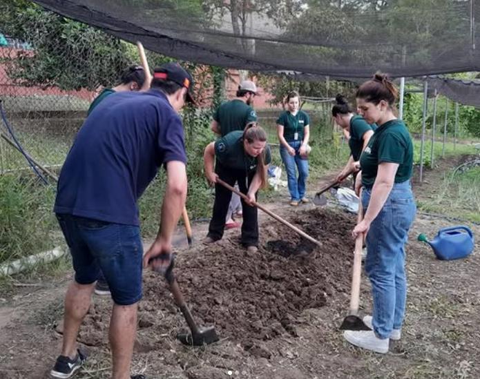 🤝Além disso nossos grupos se uniram para ajudar o lar com a manutenção da horta local, foram levadas mudas, substrato e ferramentas para revitalizar o espaço. Dentre as práticas realizadas estão o manejo de novos canteiros, a remoção de plantas que não seriam mais utilizadas e o transplante de mudas para dar início a um ambiente mais produtivo e acolhedor.