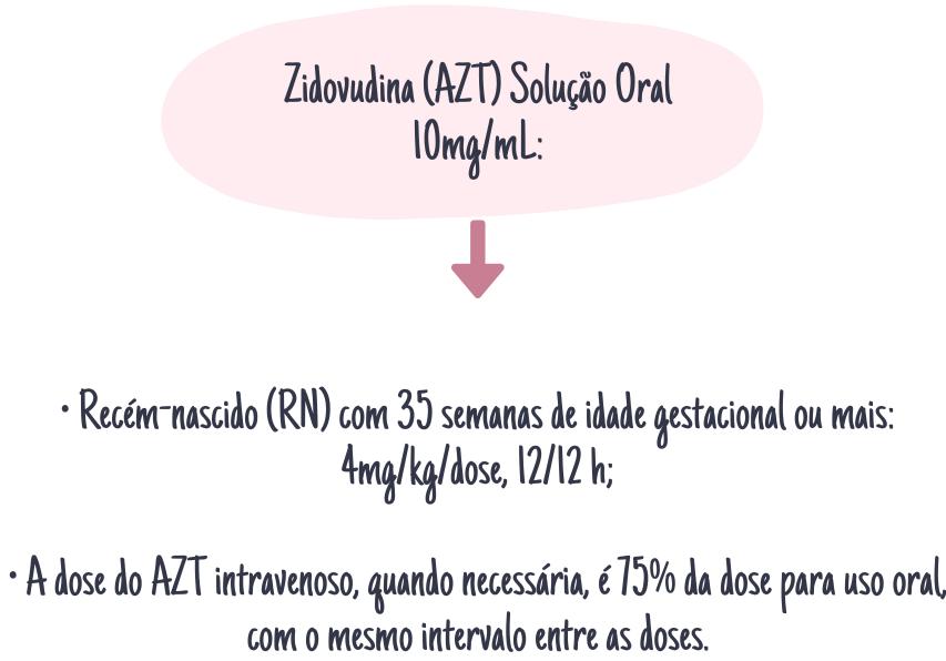 Excepcionalmente, quando a criança não tiver condições de receber o medicamento por VO, pode ser utilizado o AZT injetável, nas seguintes doses: