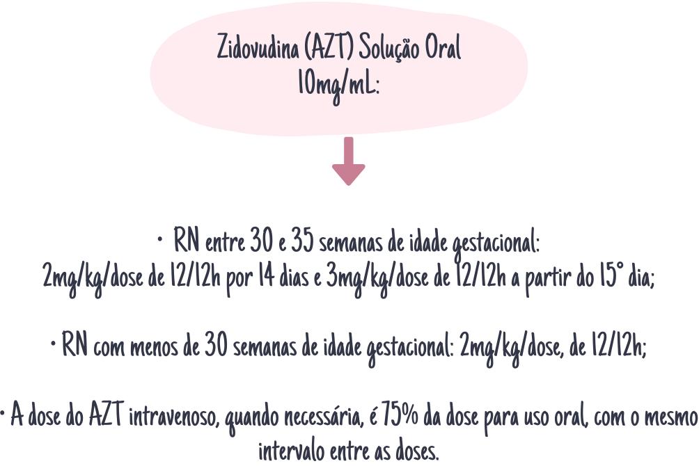 Excepcionalmente, quando a criança não tiver condições de receber o medicamento por VO, pode ser utilizado o AZT injetável, nas seguintes doses: