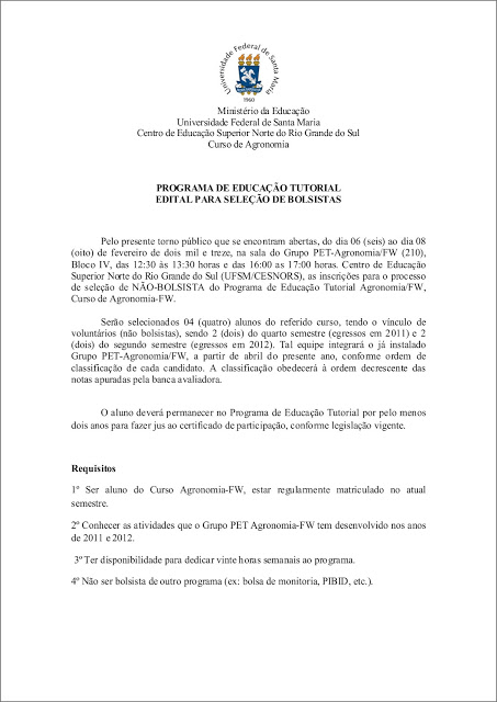 Ir para o conteúdo PET Ciências Agrárias Ir para o menu PET Ciências Agrárias Ir para a busca no site PET Ciências Agrárias Ir para o rodapé PET Ciências Agrárias