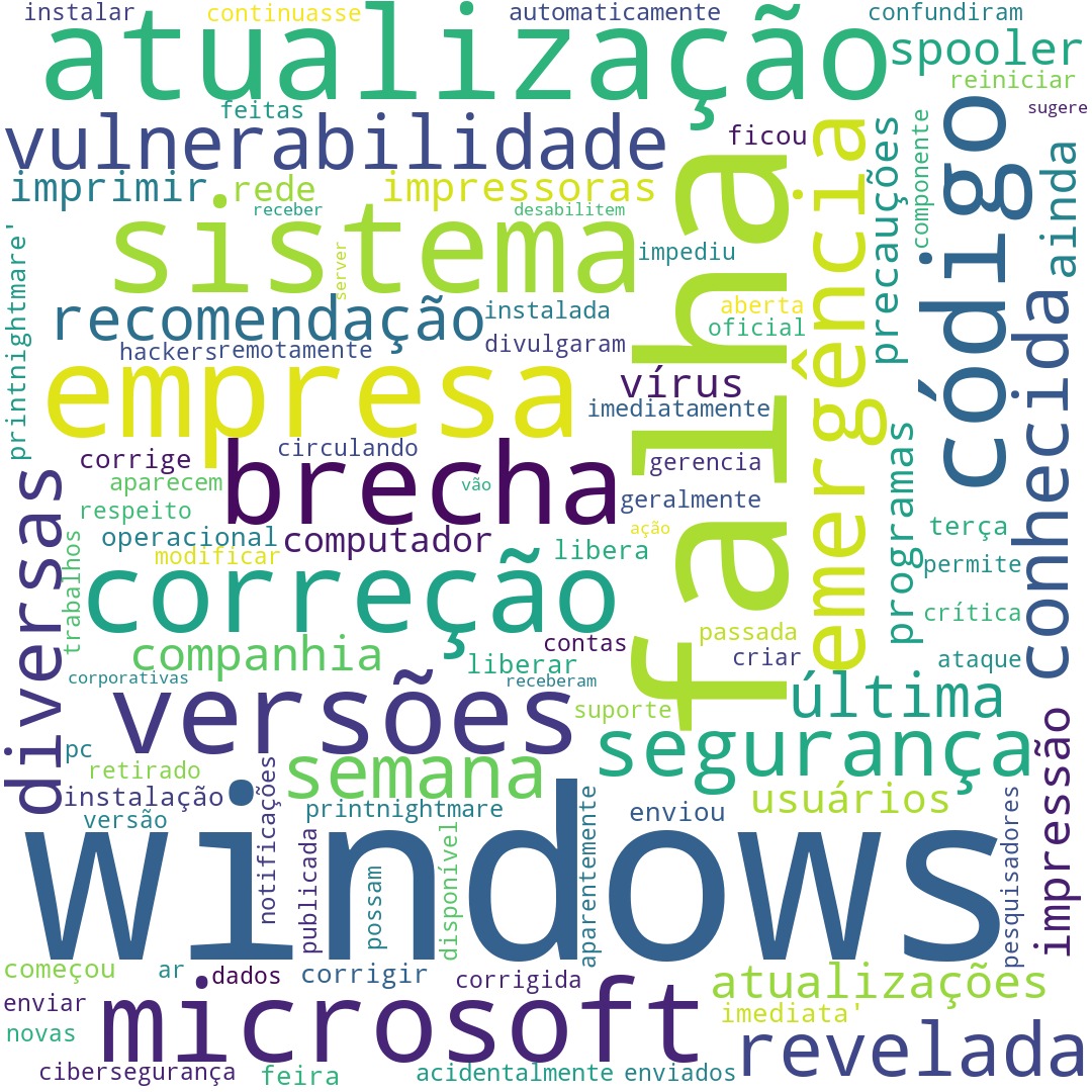 Certo, agora que você já tem noção do que vamos fazer e está com seu ambiente organizado, para iniciar, precisamos do texto a ser minerado. Neste exemplo utilizarei a reportagem que pode ser acessada através do link (https://g1.globo.com/economia/tecnologia/noticia/2021/07/07/microsoft-libera-atualizacao-de-emergencia-no-windows-para-corrigir-falha-de-seguranca.ghtml). Porém, a base de dados é de sua escolha, podendo ser um capítulo de livro, artigo ou algo de seu interesse.