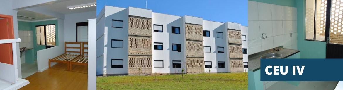 A UFSM Campus de Frederico Westphalen oferece aos estudantes em situação de vulnerabilidade socioeconômica a Casa do Estudante Universitário (CEU) IV, composta por dois blocos com 18 apartamentos (Bloco A e Bloco B), sendo que cada apartamento possui duas vagas, totalizando 72 vagas de moradia estudantil. Ambos os blocos contam com apartamentos adaptados aos estudantes com deficiência.