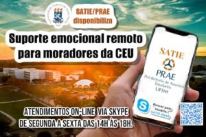 A Pró-Reitoria de Assuntos Estudantis (Prae) da UFSM passou a oferecer suporte emocional remoto para os moradores da Casa do Estudante Universitário (CEU) durante o período de suspensão das atividades presenciais. Os atendimentos on-line acontecerão via Skype de segunda a sexta-feira, das 14 às 18 horas. O aluno deve buscar no aplicativo pelo usuário SATIE PRAE. … Continue lendo UFSM proporciona suporte emocional a distância para seus estudantes
