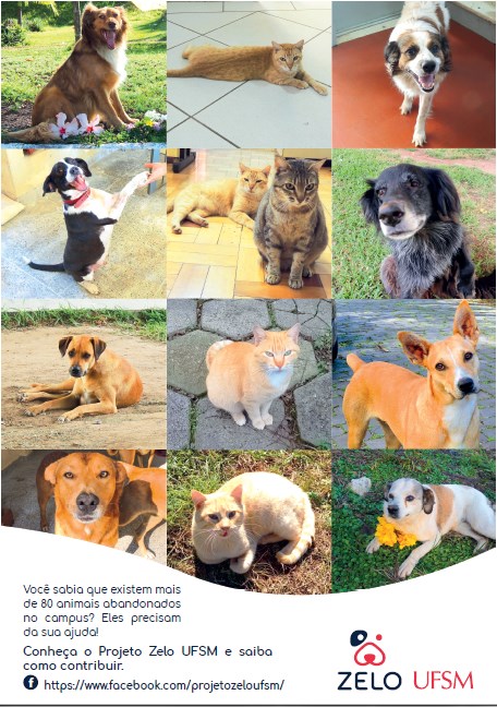 Na UFSM, temos, hoje contabilizados, mais de 80 animais (entre cachorros e gatos) abandonados no campus. O Zelo é um projeto de extensão que atua através de ações informativas, educativas e protetivas, visando ao cuidado e à adoção desses animais.
