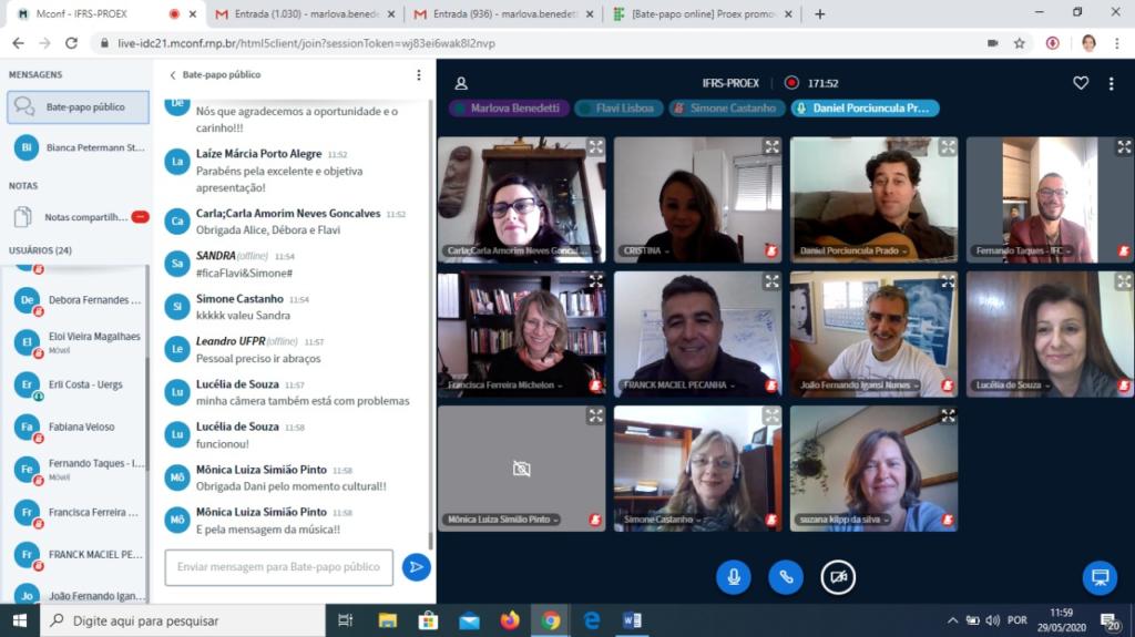 O evento, que contou com a participação de Pró-Reitores de Extensão das Instituições de Ensino Superior (IES) integrantes da Regional Sul do FORPROEX, seria organizado pelo IFSC, tendo previsão de acontecer de forma presencial em Florianópolis. Entretanto, tendo em vista as medidas de prevenção contra o novo coronavírus — como o distanciamento social —, o encontro foi realizado via web, em sala virtual disponibilizada pelo IFRS.