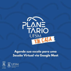 O Planetário da Universidade Federal de Santa Maria convida as instituições públicas e privadas, da Educação Básica ao Ensino Superior, de Santa Maria e região para participarem das sessões virtuais do projeto “Planetário UFSM em casa”. Os encontros serão realizados de forma online, via Google Meet, mediante agendamento prévio. As sessões ocorrem de segunda a sexta, em dois horários: às 10h e às 15h. A participação é gratuita. Os temas a serem abordados nos encontros podem ser conferidos no site do Planetário, no link: https://www.ufsm.br/orgaos-suplementares/planetario/.