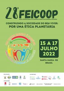 Com o tema “Construindo a Sociedade do Bem-Viver: Por uma ética planetária”, acontece, entre os dias 15 e 17 de julho de 2022, a 28.ª edição da Feira Internacional de Cooperativismo e da Economia Solidária (FEICOOP) e a 3.ª Mostra de Arte e Cultura e Diversidade da Economia Solidária. Os eventos são promovidos pelo projeto Esperançando/Cooesperança, Universidade Federal de Santa Maria (UFSM), Arquidiocese de Santa Maria, Prefeitura de Santa Maria e Instituto Federal Farroupilha (IFFar).