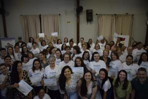 Encerrando os cursos promovidos pelo Progredir Geoparque Quarta Colônia no município de Faxinal do Soturno, aconteceu, na noite da última quinta, 23, a formatura e a entrega de certificados a 85 estudantes do programa. A cerimônia contou com a participação dos familiares e amigos das/os formandas/os, representantes da UFSM e do CRAS de Faxinal de Soturno, além do CONDESUS e da Prefeitura Municipal. Ao todo, três cursos foram finalizados: Massas artesanais e possíveis aplicações, Sabão, sabonetes e cosméticos naturais e Garçom; Garçonete.